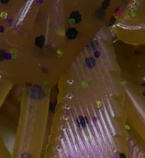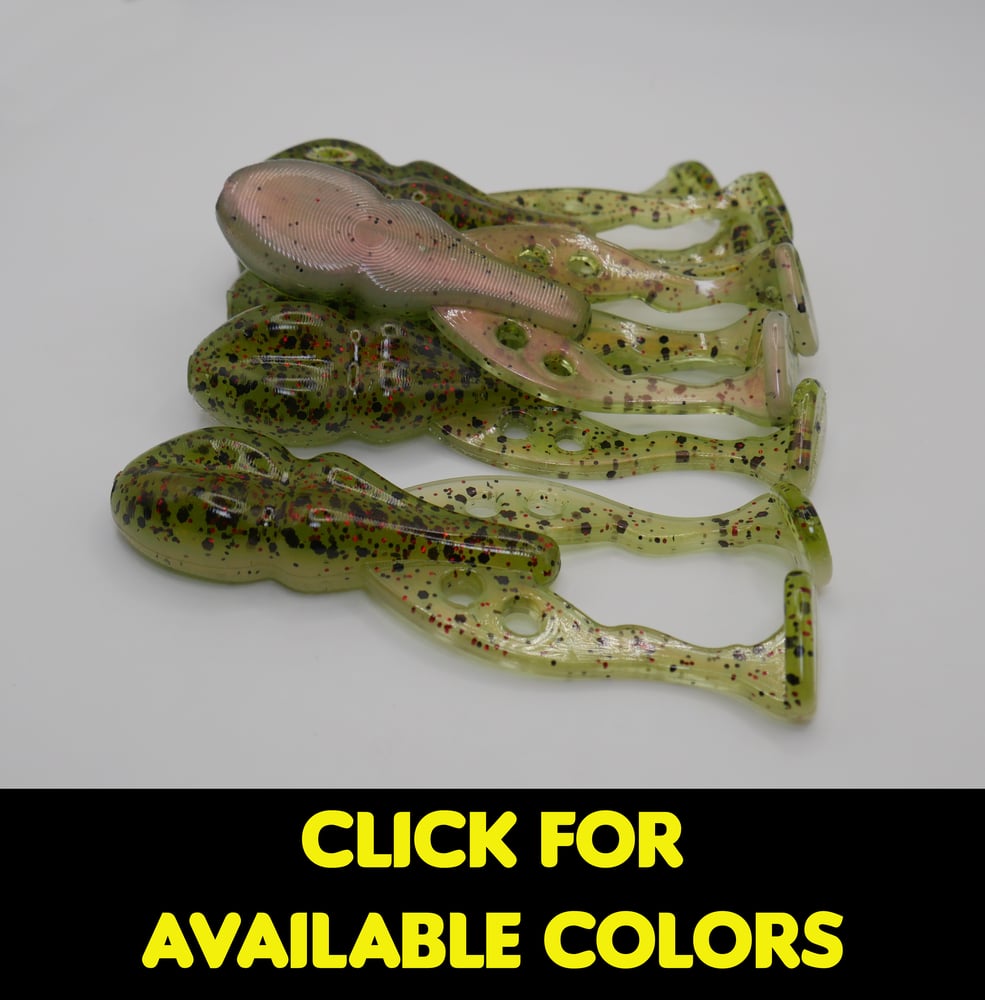 The Ribbit kicks on the surface with two fast moving paddle shaped feet. The holes in the legs catch air and help leave a bubble trail on the surface of the water. This frog bait was designed to kick fast even with a slower finesse style retrieve.